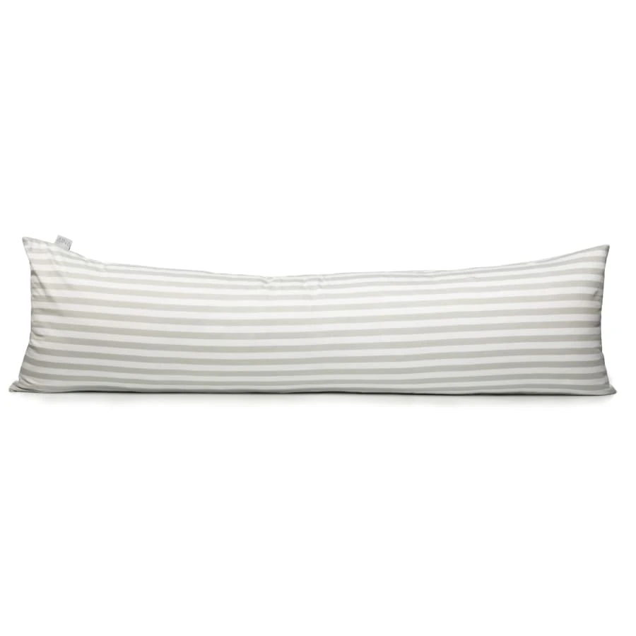 AINA Raita är ett örngott med randigt mönster av 100 % trikåbomull. Trikåstickan känns mjuk, smidig och varm mot huden.