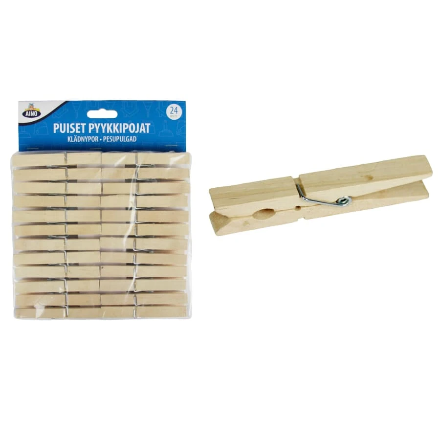 Aino puupyykkipojat on valmistettu puusta. Puisen materiaalin ansiosta pyykkipojat ovat ympäristöystävällisiä ja helppo kierrättää. Pakkauksessa on 24 kappaletta pyykkipoikia.