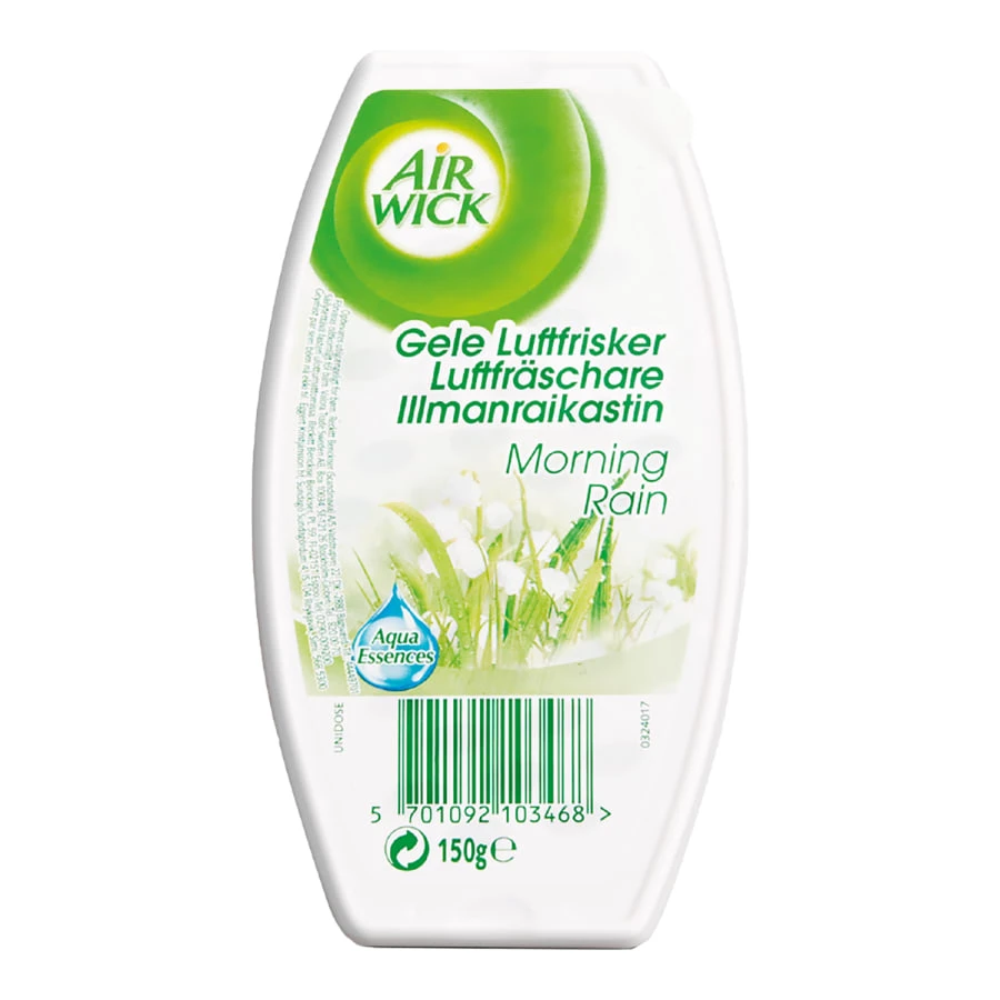 The scent of light rain is soothing – and now you can enjoy it anytime with Air Wick® Gel Block Morning Rain™ Gel Freshener. It can be used as a long-lasting quick freshener when guests arrive or daily to combat odors and freshen up the home.