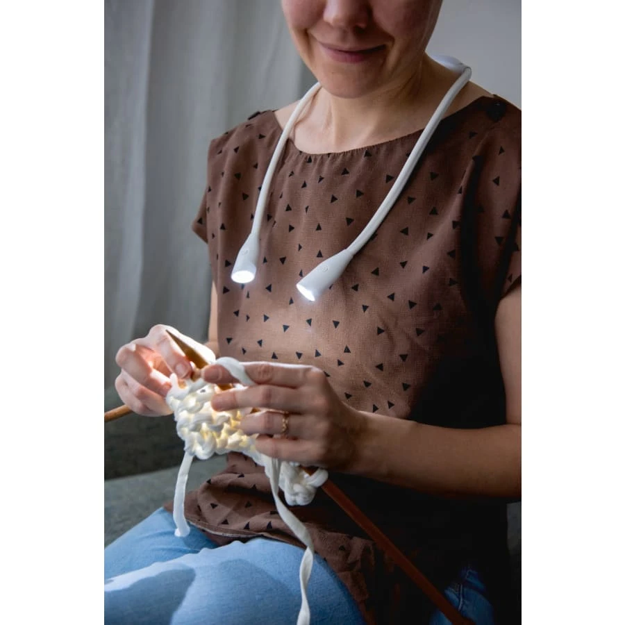 Läs- och handarbetslampan med lätt konstruktion är bokmalens och handarbetsvännens önskeprodukt! Häng lampan runt halsen och låt ljuset skina i din famn. Produkten frigör händerna och låter dig koncentrera dig på arbetet. Ger effektivt ljus från båda ändorna. Ljuseffekten kan justeras i tre steg. USB-laddningsbar, laddningskabel medföljer i förpackningen. Produkterna levereras i en behändig 5 st. bordsdisplay, som enkelt kan ställas fram i affären. En enskild produktförpackning kan också hängas på spjut.