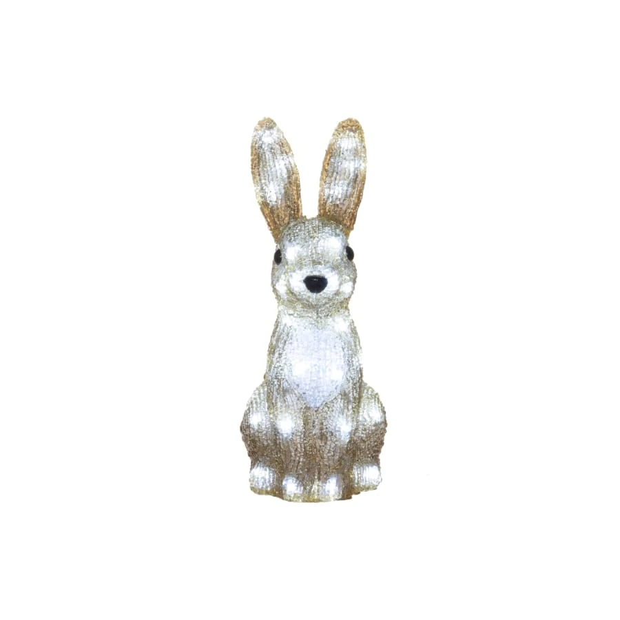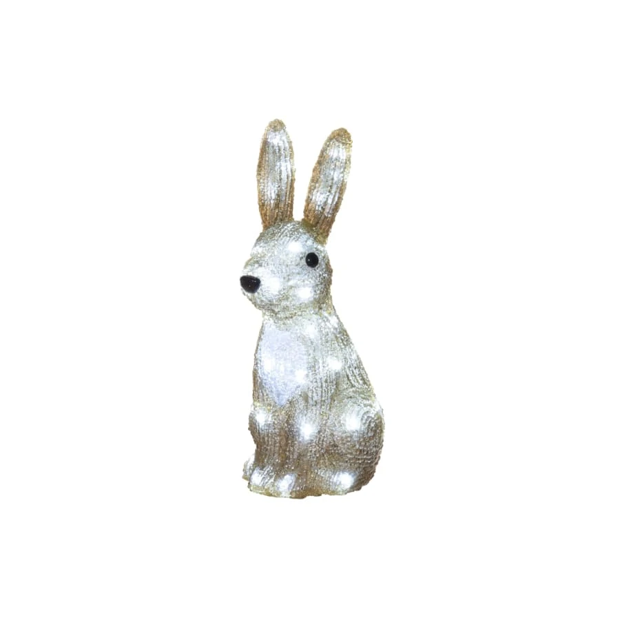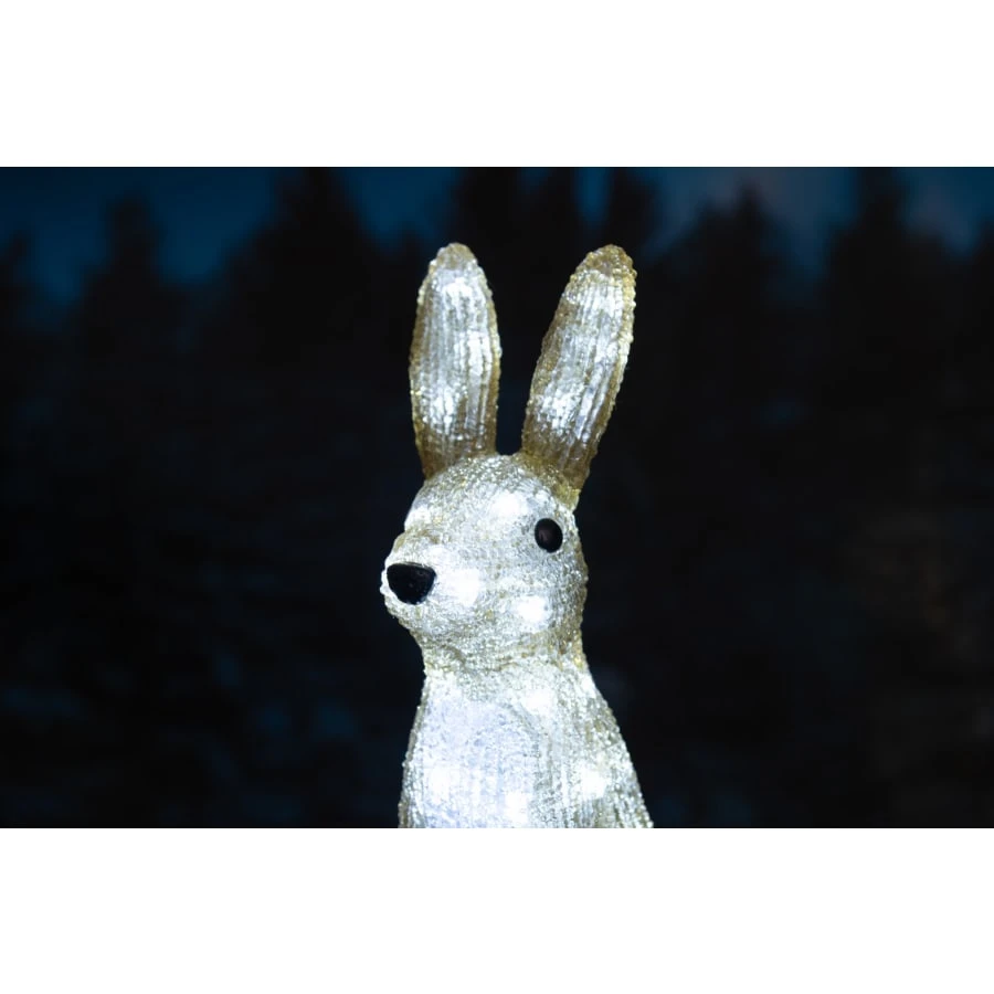 A cute acrylic rabbit will create an atmosphere in your garden, on your balcony, terrace and why not indoors too. The rabbit contains 40 white LED lights. Connection cable 5 m. Transformer IP44 for indoor and outdoor use.