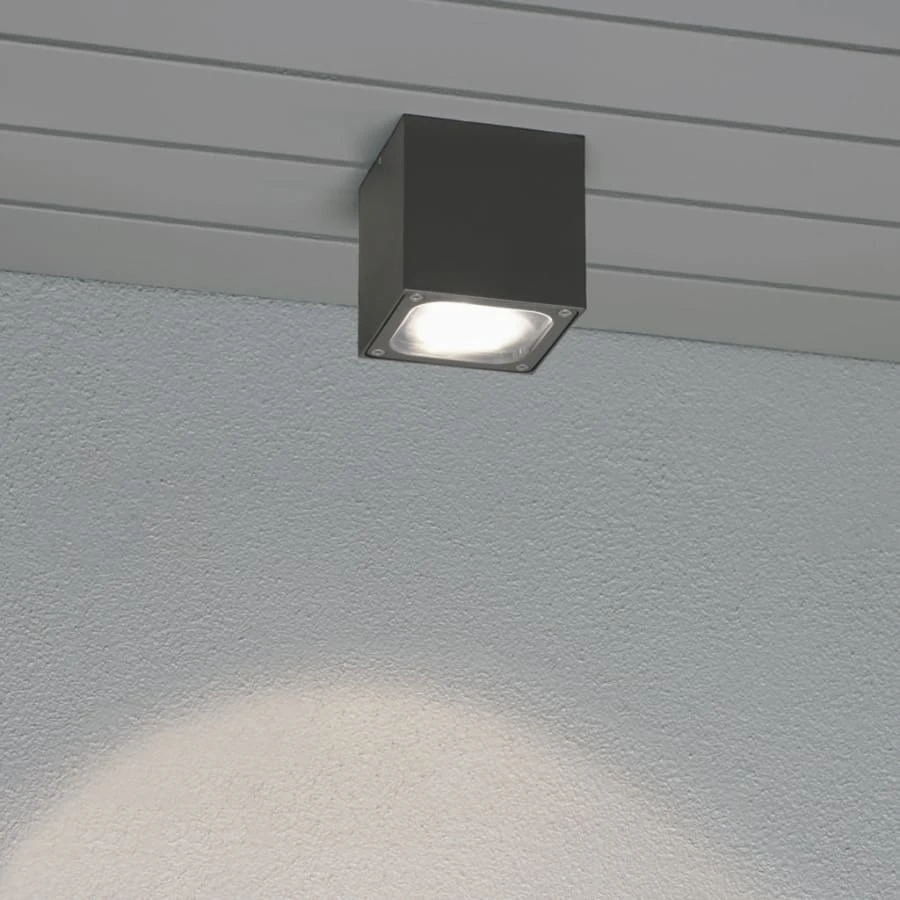 Konstsmide Cesena 7852-370 ceiling lamp, IP54, length 10 cm, width 10 cm, height 10 cm, clear glass, aluminum body, body color dark gray, 400lm, fixed LED 1x6W, 3000K