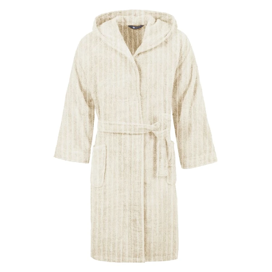 The familiar classic Aalto towel has now also been transformed into a bathrobe. The organic cotton Aalto bathrobe has a hood and generous side pockets. The jacket is tied with a belt. Size L, XL. Öko-tex certification.