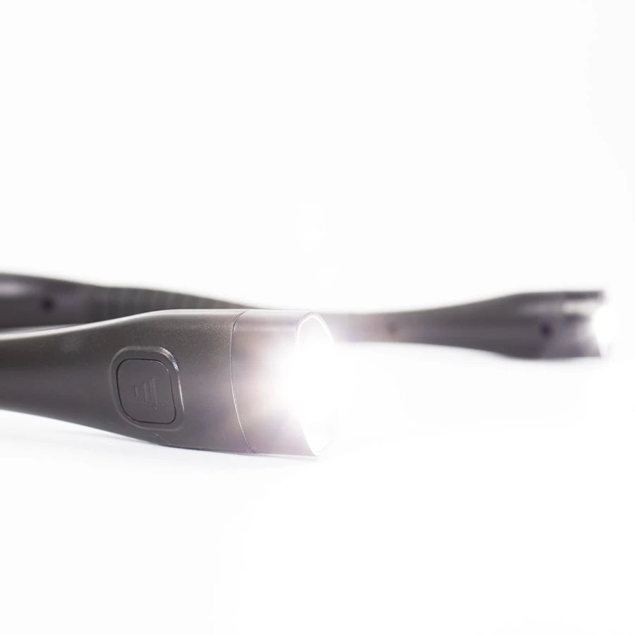 Keveä valaisin asetetaan niskalle, josta valaisinputket tulevat käyttäjän eteen antamaan valoa työskentelykohteelle tai luettavalle kirjalle. Putkien asento vapaasti säädettävissä, ja lisäksi valon kirkkautta voi säätää kolmeen eri asetukseen. Niskaosassa hiertymiä ehkäisevä miellyttävä samettipehmuste.